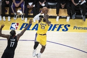 我們本以為詹姆斯會用過去的方式來做到這一點,覺得他擊退死神的方法就是讓時光倒流。在無關痛癢的常規(guī)賽收官前的最后三場比賽中,詹姆斯場均得到28分,外加接近13次助攻和8個籃板。他場均出手18.3次,僅略低于他8年湖人生涯和4年熱火生涯的季后賽場均出手數(shù)。