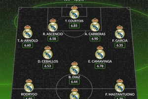 中場:塞巴略斯(6.53分)、布拉欣·迪亞斯(6.44分)、卡馬文加(6.78分)