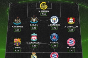 體育資訊1月29日訊 歐冠聯(lián)賽階段戰(zhàn)罷,數(shù)據(jù)網(wǎng)站W(wǎng)hoscored也評(píng)選出聯(lián)賽階段場(chǎng)均評(píng)分最高陣容,具體如下: